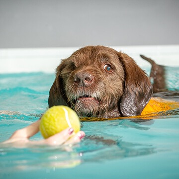 Some exercise may be too challenging for the animal on land but by carrying them out in a reduced weight bearing environment which relieves pressure and load on their joints, reducing pain encourages a better range of movement which in time will improve gait and strengthen muscle condition and core.